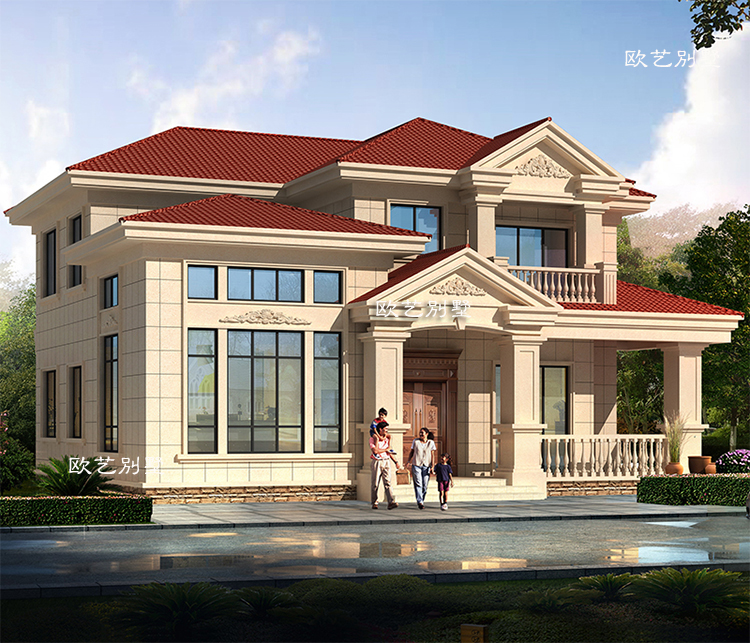 别墅外观大气,虽然和我们普通的房屋占地面积一样,但是结合这个外墙装饰就高大上了。